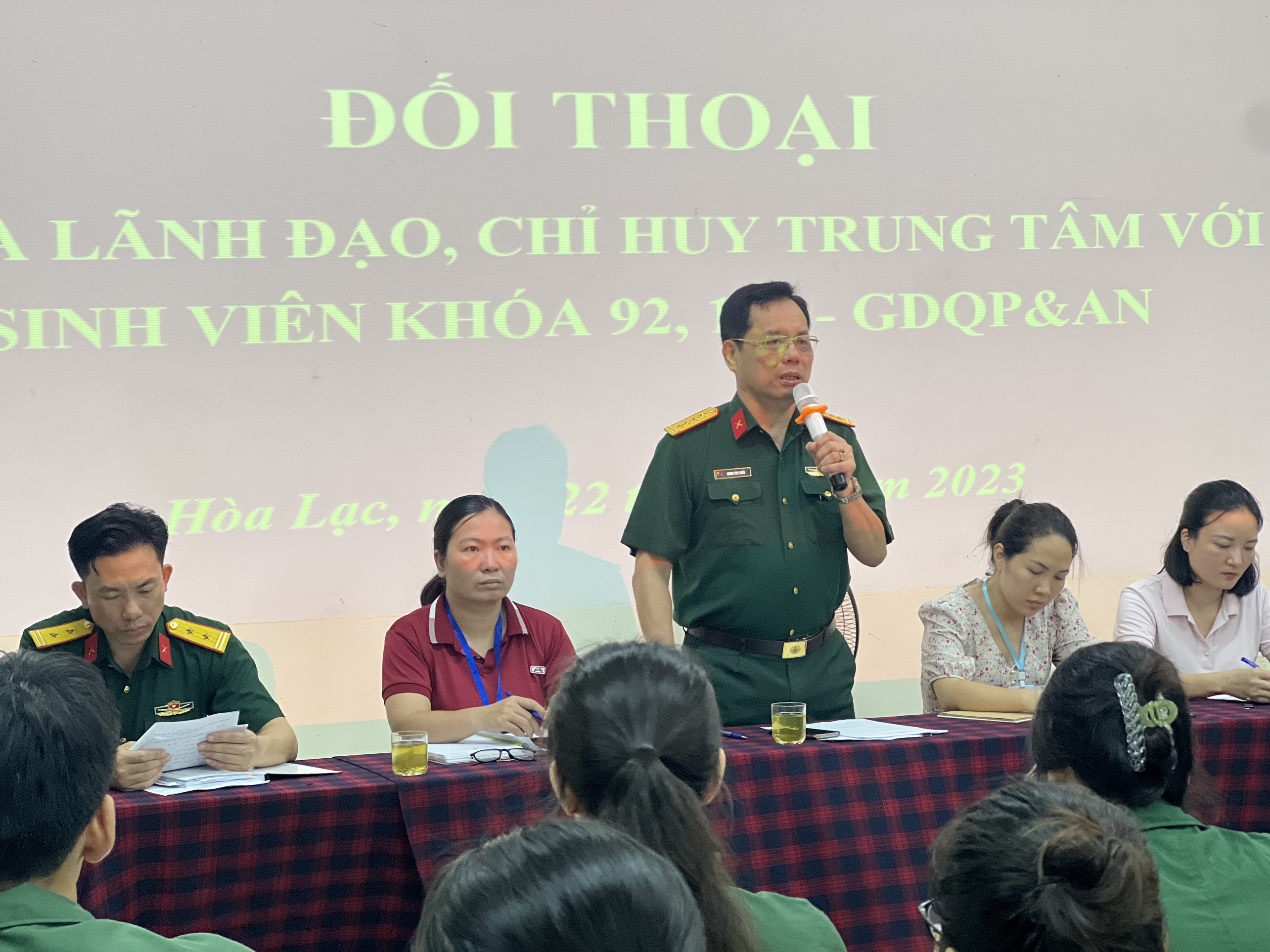 Chủ trì hội nghị, Đại tá Dương Văn Chiến, Phó Bí thư Đảng ủy, Phó Giám đốc Trung tâm đã nêu rõ mục đích, nội dung và phương pháp tiến hành đối thoại. Trong buổi đối thoại, đồng chí ghi nhận, biểu dương tinh thần phê bình và tự phê bình của sinh viên khóa 92, 117 thông qua việc đóng góp ý kiến chân thành, thẳng thắn, cởi mở ở cấp trung đội, đại đội. Phòng Đào tạo và Quản lý người học đã tổng hợp tất cả các ý kiến đóng góp của các đại đội sau đó gửi đến đầu mối các đơn vị có liên quan trực tiếp để tiến hành triển khai khắc phục ngay các vấn đề còn tồn tại mà sinh viên đã phản ánh.
