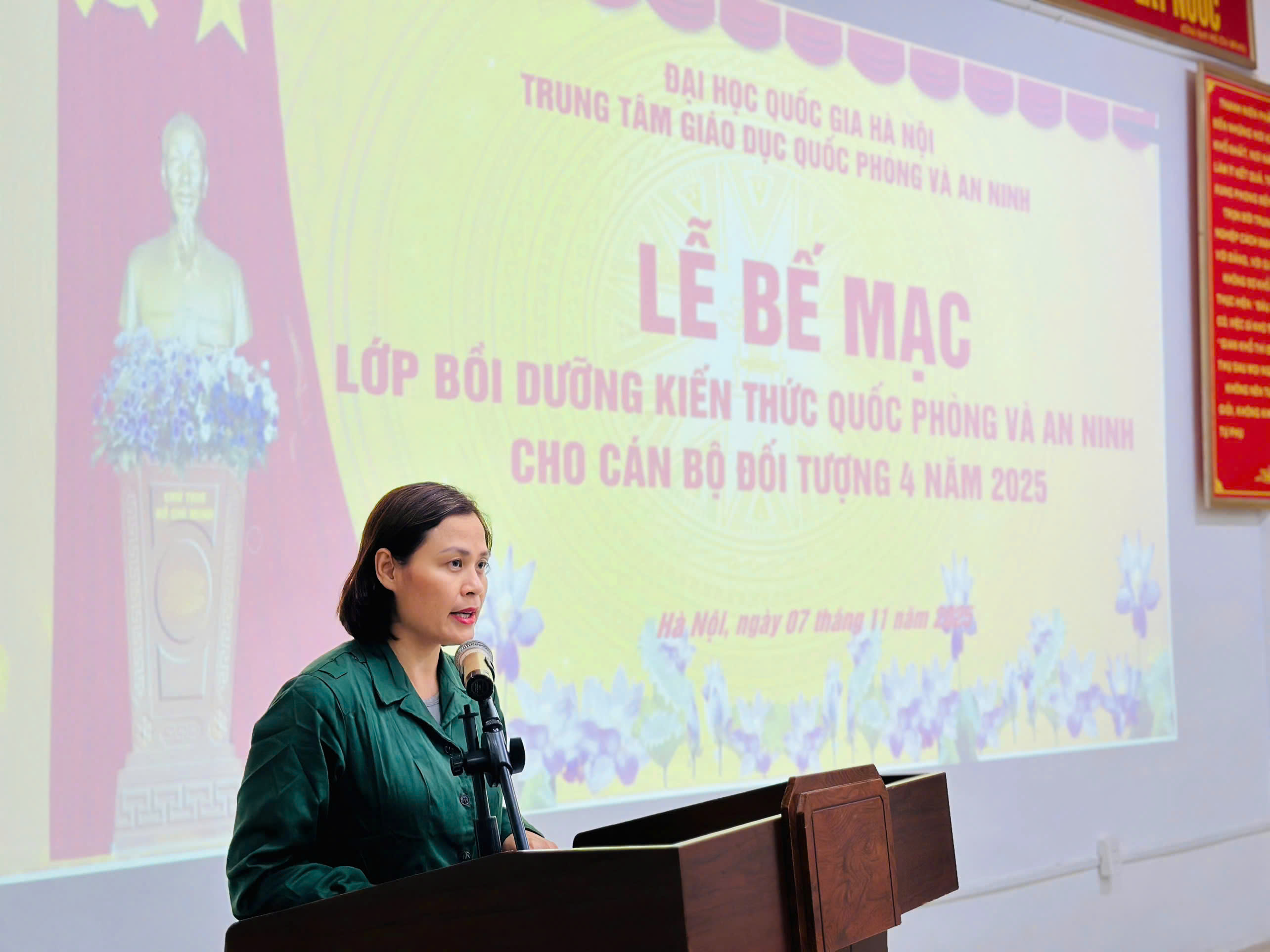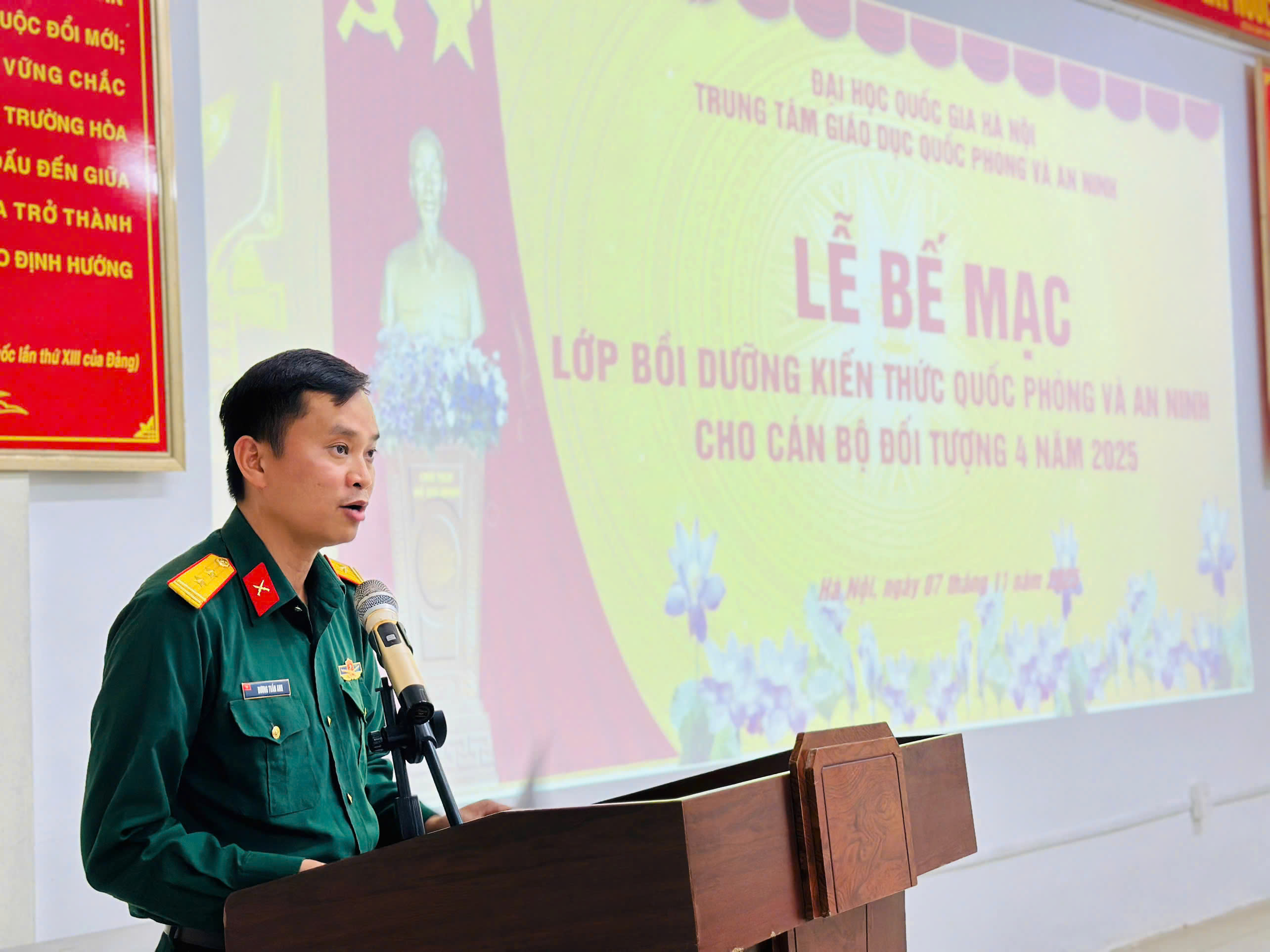 Đúng như những kỳ vọng ấy, dưới sự chỉ đạo, quan tâm và động viên kịp thời của lãnh đạo ĐHQGHN và Trung tâm, cùng với nỗ lực, quyết tâm của cán bộ, giảng viên và học viên, khóa học diễn ra từ ngày 03/11/2025 đến ngày 08/11/2025 đã thành công tốt đẹp. Sau 5 ngày học tập tập trung với tinh thần trách nhiệm cao, các học viên Lớp BDKTQP&AN đối tượng 4 năm 2025 đã hoàn thành xuất sắc nhiệm vụ khóa học, ghi dấu một chặng đường rèn luyện, học tập và trưởng thành đầy ý nghĩa.
