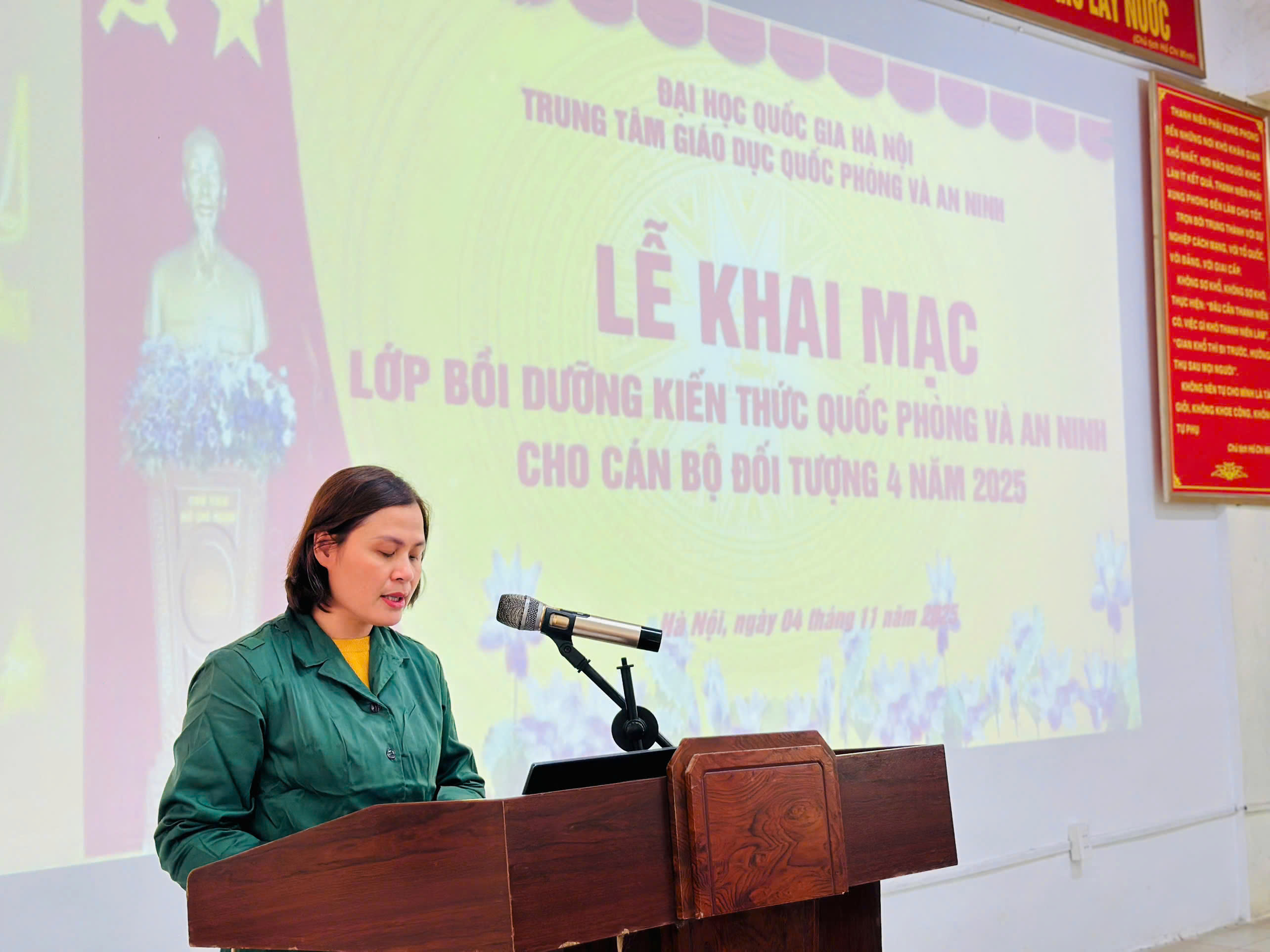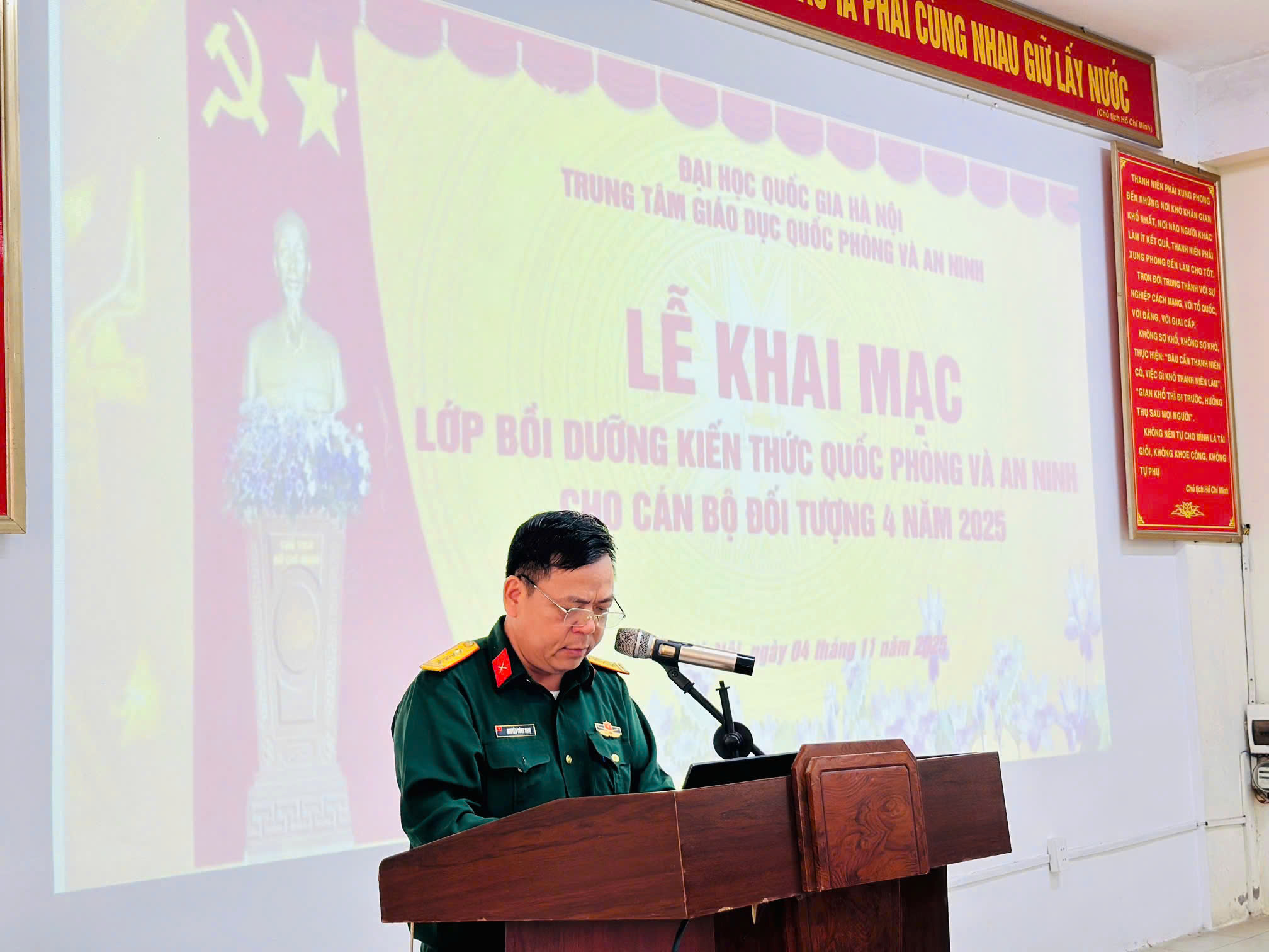 Sáng ngày 04/11/2025, tại Trung tâm đã diễn ra Lễ khai mạc Lớp bồi dưỡng kiến thức QP&AN đối tượng 4 năm 2025 trong không khí trang nghiêm, phấn khởi. Đây là nội dung quan trọng có ý nghĩa chính trị to lớn, góp phần nâng cao nhận thức, bồi dưỡng trách nhiệm cho đội ngũ cán bộ, đảng viên và viên chức ĐHQGHN đối với sự nghiệp xây dựng và bảo vệ Tổ quốc trong giai đoạn mới.