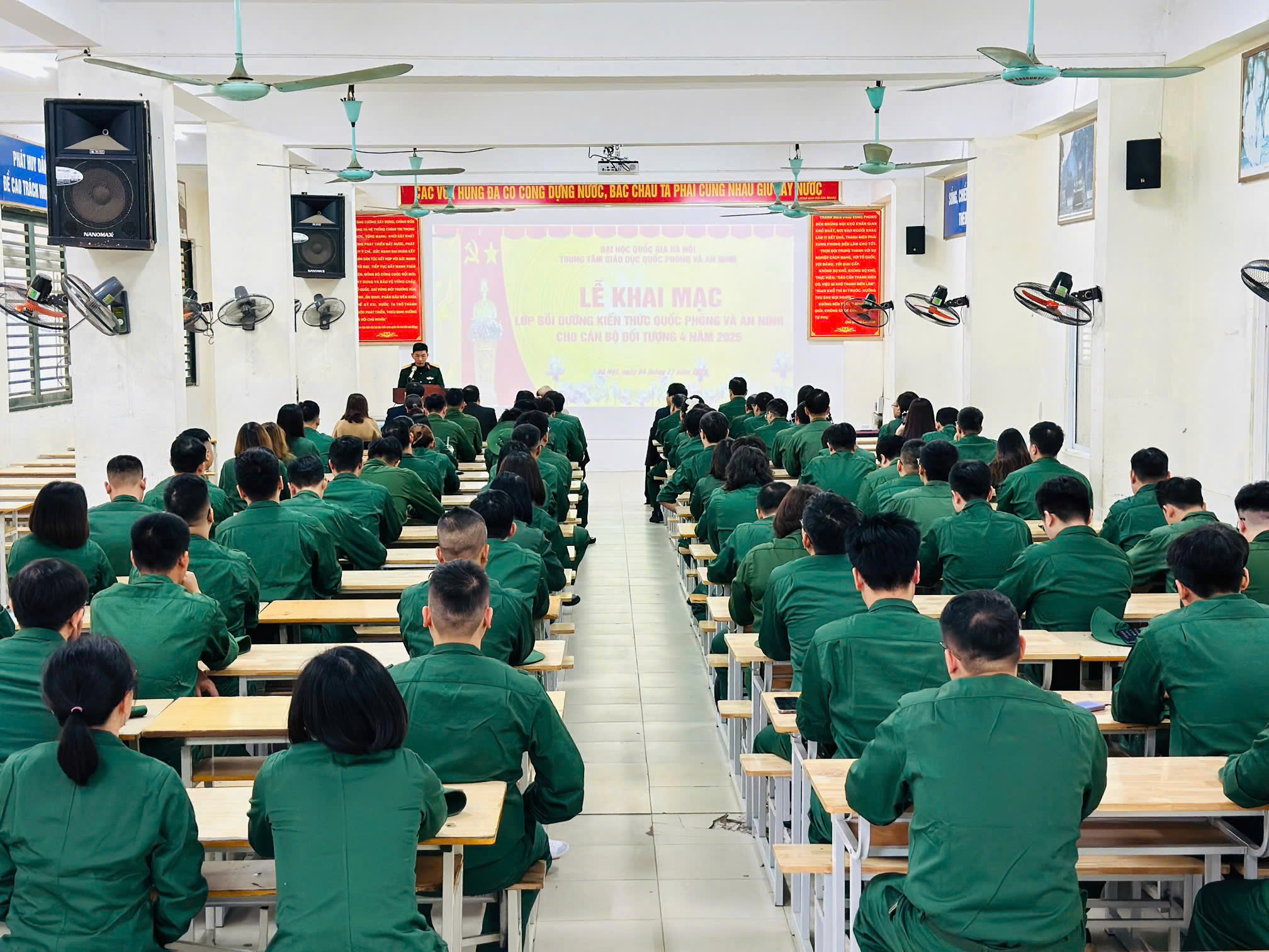 Lễ khai mạc khép lại trong không khí phấn khởi, đánh dấu sự sẵn sàng của các học viên bước vào tuần học tập, rèn luyện. Với tinh thần đoàn kết, kỷ luật và trách nhiệm, các học viên Lớp bồi dưỡng kiến thức QP&AN đối tượng 4 năm 2025 hứa hẹn sẽ tiếp tục nối truyền thống của các khóa trước: học thực chất, rèn luyện nghiêm túc, hoàn thành xuất sắc nhiệm vụ được giao, góp phần bồi đắp sức mạnh trí tuệ, ý chí và niềm tự hào của đội ngũ cán bộ, viên chức ĐHQGHN trong sự nghiệp xây dựng và bảo vệ Tổ quốc.